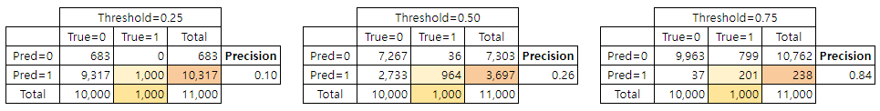 - Precision = TP / (FP+TP)